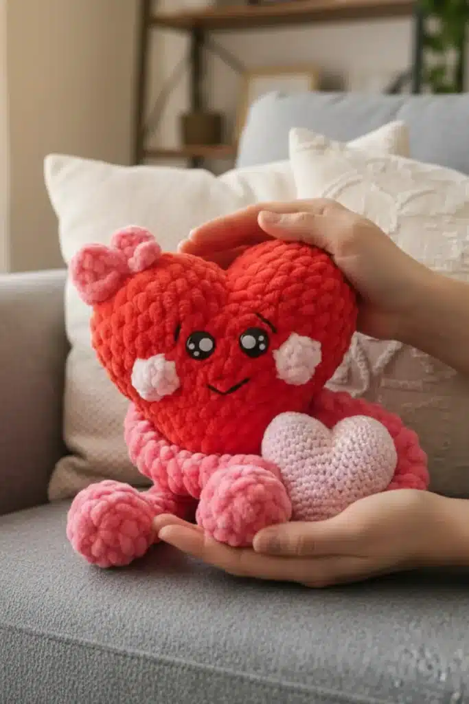 Imagine gifting a handmade Valentine that’s soft, cuddly, and full of love 💝 This Cute Plush Valentine’s Heart Free Crochet Pattern is the perfect project for creating an adorable amigurumi heart using plush yarn. Designed with beginners and intermediate crocheters in mind, this pattern walks you step by step through making a charming heart complete with sweet facial details, arms, legs, and a tiny bow. Whether you’re preparing a Valentine’s Day gift, decorating your space, or adding to your amigurumi collection, this plush crochet heart is guaranteed to spread love.