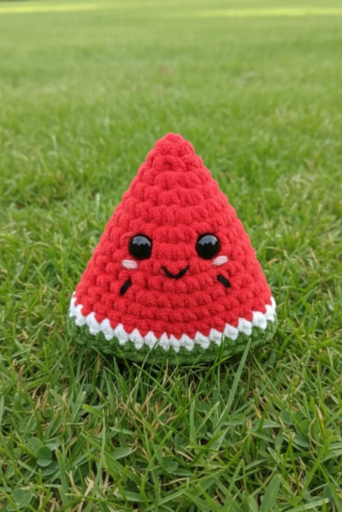 Congratulations, fellow maker! You’ve not only crocheted a charming watermelon slice but also honed your skills and created something truly unique with your own hands. Embrace the fuzzy texture, the sweet little smile, and the satisfaction of a handmade creation. We hope you cherish your new plushie and that this pattern inspires many more delightful amigurumi adventures. Happy hooking!